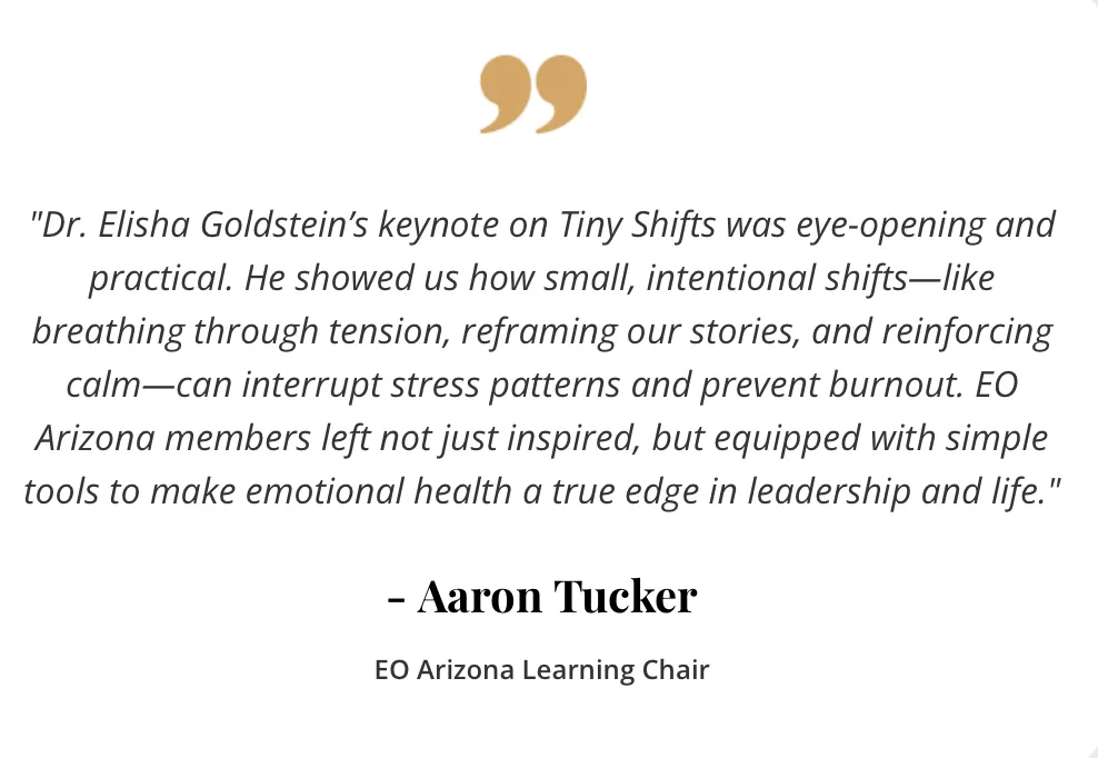 Dr. Elisha Goldstein is a clinical psychologist, speaker, and author dedicated to helping people enhance their emotional health for greater happiness and longevity. He is the founder of the Emotional Longevity Experience and host of The Emotional Longevity Podcast. With a warm, science-backed approach, Dr. Goldstein has supported thousands in creating calmer minds, stronger relationships, and more meaningful lives.